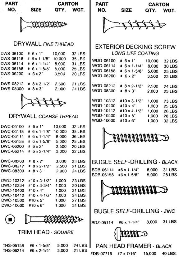 Coarse Thread and Fine Thread Drywall Screws